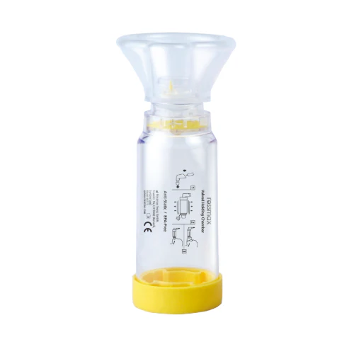 غرفة الإمساك ذات الصمام المعروضة في الصورة هي جهاز Rossmax Aero Spacer AS175، وهي مصممة للاستخدام مع أجهزة الاستنشاق بالجرعات المقننة (MDIs) لتوصيل الأدوية الهبائية إلى الرئتين.