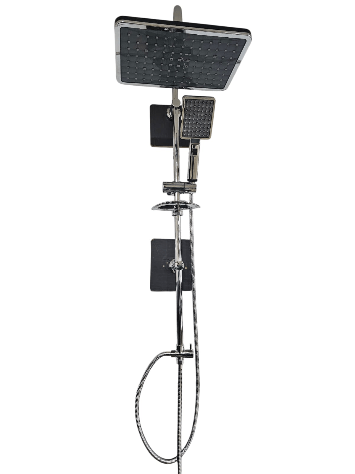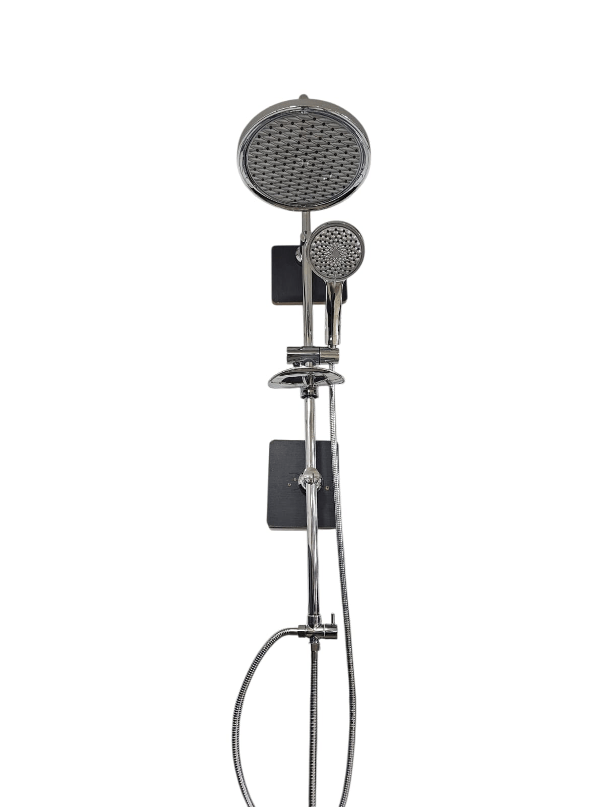 يتضمن النظام رأس دش علوي مربع، ودش يدوي، وعمود دش قابل للتعديل.