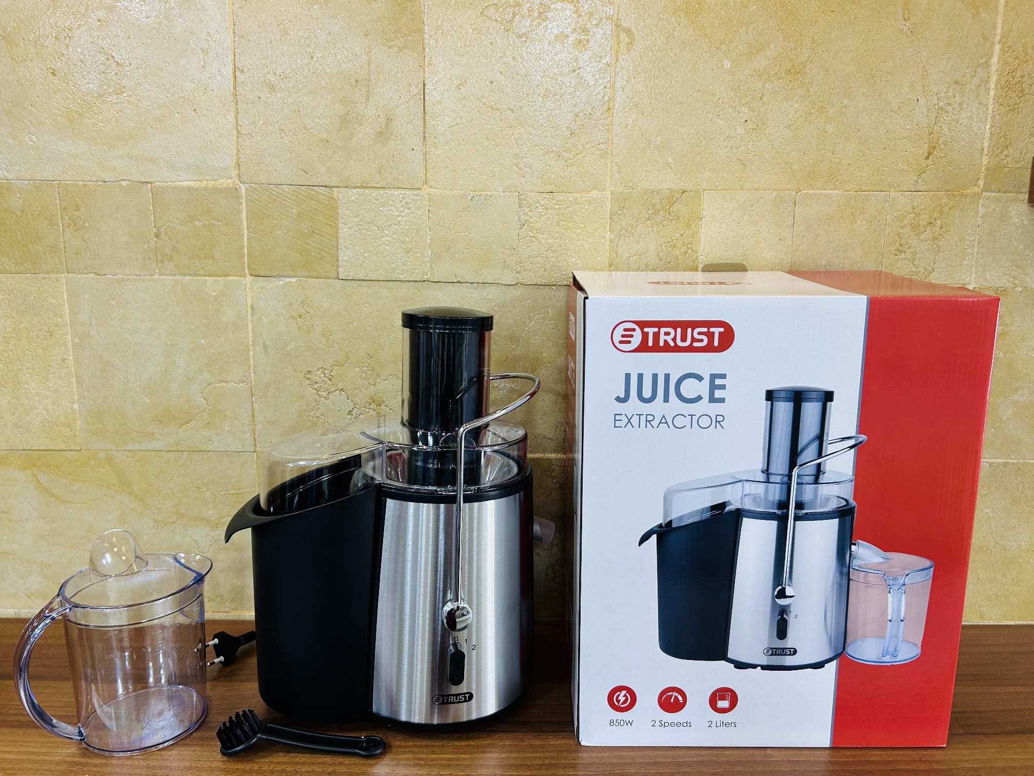 هذا المنتج هو عصارة فواكه من ماركة Trust. إليك بعض المعلومات عنه: اسم المنتج: Trust Juice Extractor 210-06330 الطاقة: 850 واط السعة: 2 لتر السرعة: سرعتان السعر: يتوفر بسعر 240.00 شيكل