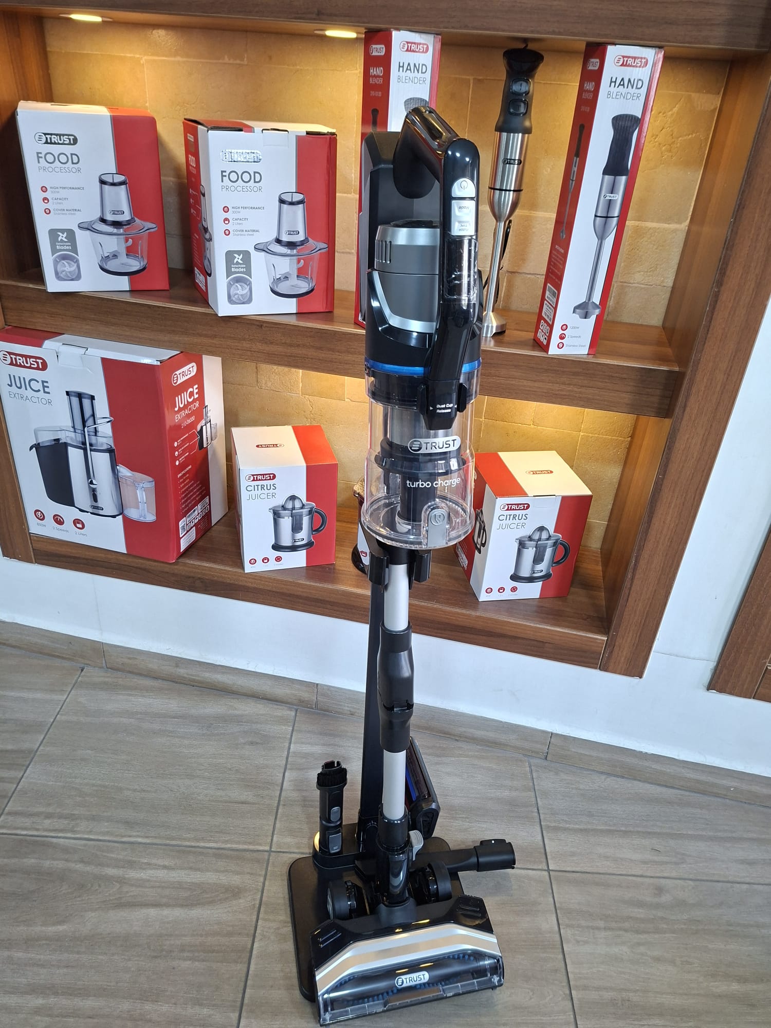 مكنسة Trust Pro Turbo اللاسلكية هي منتج لتنظيف المنزل. الموديل: 215-02705. قوة المحرك: 550 واط. قوة الشفط: 18 كيلو باسكال. البطارية: ليثيوم 36 فولت. السعة: 1 لتر.