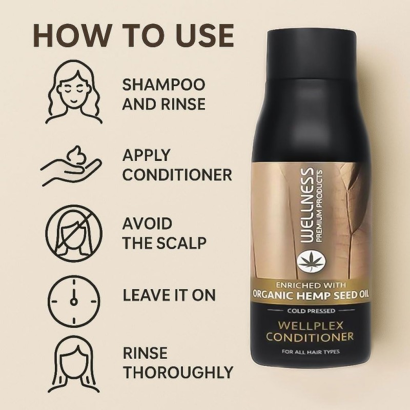 بلسم Wellplex من Wellness Premium Products هو منتج للعناية بالشعر مصمم لإصلاح وتقوية الشعر التالف .