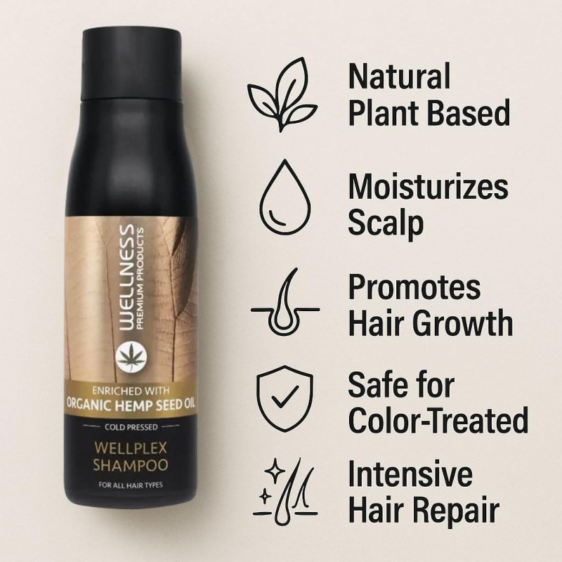 شامبو Wellplex من Wellness Premium Products هو شامبو مصمم لجميع أنواع الشعر، وخاصة الشعر التالف والمعالج كيميائيًا.