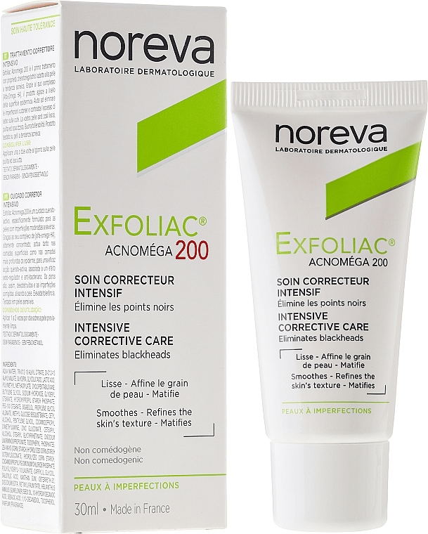 المنتجNoreva Exfoliac Acnomega 200، كريم عناية مكثفة مصمم للبشرة المعرضة للعيوب